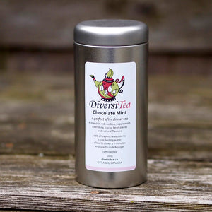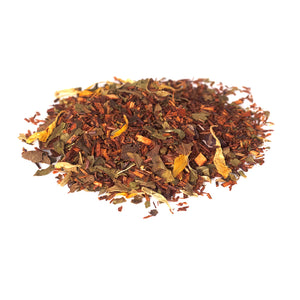 The decadent combination of chocolate and mint will have you reaching for a second cup of this organic tea. Cool peppermint leaves, calendula, cocoa beans, and natural flavours are blended with organic green rooibos tea. Best enjoyed after 8.